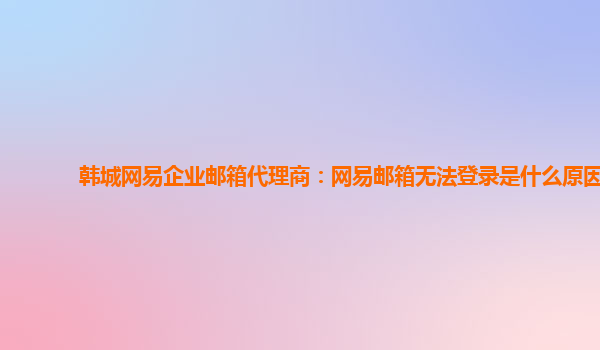 2024-02-16韓城網易企業郵箱代理商:網易郵箱無法登錄是什么原因 網易企業郵箱作為一款廣泛使用的企業郵箱服務,有時候可能會遇到無法登錄的問題。下面將從幾個常見的原因進行分析,并介紹網易企業郵箱的優勢。 1.常見...