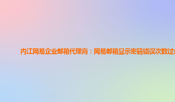 2024-02-16內江網易企業郵箱代理商:網易郵箱顯示密碼錯誤次數過多 最近,我作為內江地區的網易企業郵箱代理商,收到了一些用戶反饋,稱他們在登錄網易企業郵箱時遇到了密碼錯誤次數過多的問題。今天,我想以此為主題,向大家...