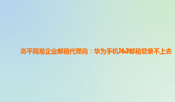 2024-02-16華為手機163郵箱登錄不上去的解決方法 在日常工作中,我們經常會使用企業郵箱作為主要的電子郵件溝通工具。然而,有時候我們可能會遇到登錄不上去的問題,尤其是在用華為手機登錄163郵箱時。針對這個問題,結合網易...