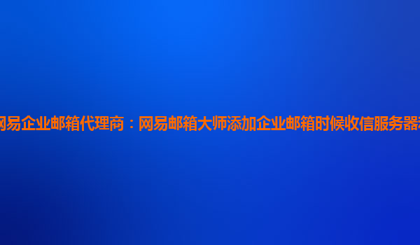2024-02-15網易企業郵箱代理商:網易郵箱大師添加企業郵箱收信服務器和發信服務器設置說明 在使用網易企業郵箱時,我們可以選擇使用網易郵箱大師作為代理商來管理企業郵箱。當添加企業郵箱時,我們需要填寫收信服務器和發信服...