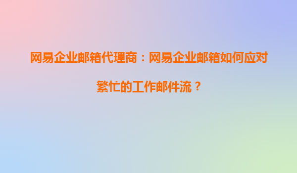 2025-09-16網(wǎng)易企業(yè)郵箱代理商:網(wǎng)易企業(yè)郵箱如何應(yīng)對(duì)繁忙的工作郵件流? 在現(xiàn)代企業(yè)中,高效的郵件溝通是工作順利開展的關(guān)鍵。隨著業(yè)務(wù)的擴(kuò)張和團(tuán)隊(duì)規(guī)模的擴(kuò)大,企業(yè)每天處理的郵件數(shù)量大幅增加,如何高效管理...
