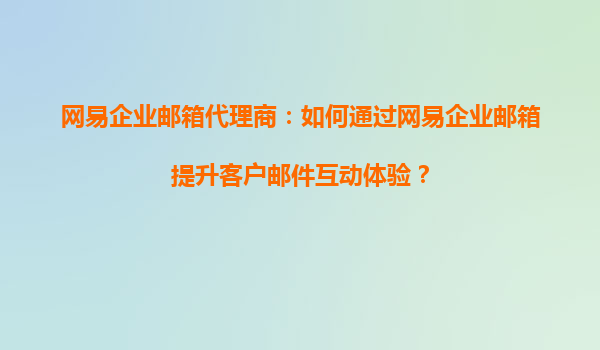 2025-09-16網(wǎng)易企業(yè)郵箱代理商:如何通過網(wǎng)易企業(yè)郵箱提升客戶郵件互動(dòng)體驗(yàn)? 一、引言:郵件互動(dòng)體驗(yàn)對(duì)企業(yè)的重要性 在數(shù)字化時(shí)代,電子郵件仍然是企業(yè)與客戶溝通的核心渠道之一。高效的郵件互動(dòng)不僅能提升客戶...