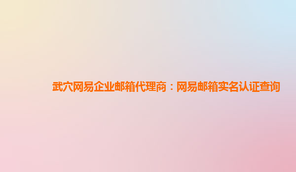 2024-02-14武穴網易企業郵箱代理商:網易郵箱實名認證查詢 隨著互聯網的快速發展,電子郵件已經成為人們工作和生活中不可或缺的一部分。而在企業級用戶中,網易企業郵箱以其穩定可靠、功能全面等特點受到了廣大用戶的青睞。作...