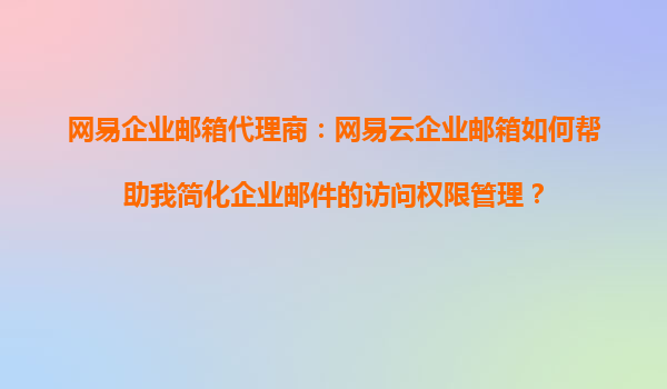 2025-09-05網(wǎng)易企業(yè)郵箱代理商:網(wǎng)易云企業(yè)郵箱如何幫助我簡化企業(yè)郵件的訪問權(quán)限管理? 一、企業(yè)郵件權(quán)限管理的痛點(diǎn)與需求 在數(shù)字化辦公時(shí)代,企業(yè)郵箱已成為日常溝通的核心工具,但權(quán)限管理往往面臨以下挑戰(zhàn): ...