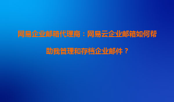 4008-020-360 網(wǎng)易企業(yè)郵箱代理商:網(wǎng)易云企業(yè)郵箱如何幫助我管理和存檔企業(yè)郵件? 在當(dāng)今數(shù)字化辦公環(huán)境中,企業(yè)郵件的管理和存檔是提高工作效率、保障數(shù)據(jù)安全的重要環(huán)節(jié)。作為國(guó)內(nèi)領(lǐng)先的企業(yè)郵箱服務(wù)提供商,網(wǎng)易企業(yè)...