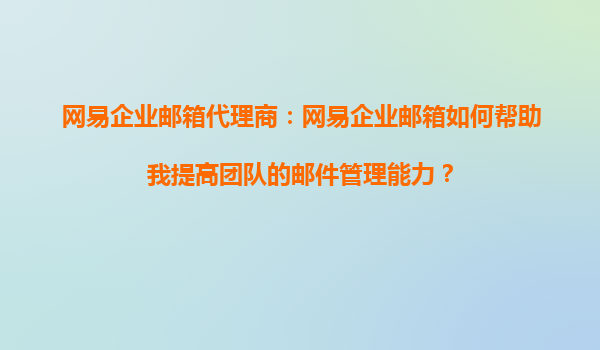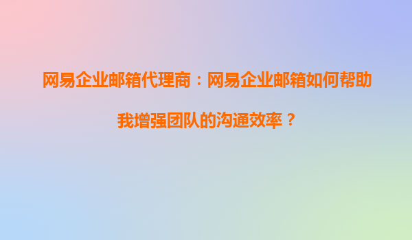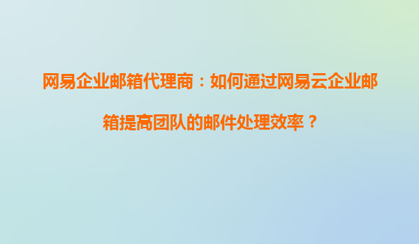 2025-09-04網(wǎng)易企業(yè)郵箱代理商:如何通過(guò)網(wǎng)易云企業(yè)郵箱提高團(tuán)隊(duì)的郵件處理效率? 一、前言 在當(dāng)今快節(jié)奏的商業(yè)環(huán)境中,高效的郵件處理是團(tuán)隊(duì)協(xié)作中不可或缺的一環(huán)。網(wǎng)易云企業(yè)郵箱作為國(guó)內(nèi)領(lǐng)先的企業(yè)郵...