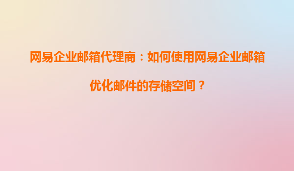 2025-09-02如何通過(guò)網(wǎng)易企業(yè)郵箱優(yōu)化郵件存儲(chǔ)空間 網(wǎng)易企業(yè)郵箱作為國(guó)內(nèi)領(lǐng)先的企業(yè)級(jí)郵箱服務(wù)提供商,憑借其強(qiáng)大的功能和穩(wěn)定的性能,為企業(yè)用戶提供了高效便捷的郵件管理體驗(yàn)。其中,郵件存儲(chǔ)空間優(yōu)化功能尤為突出,能夠幫...