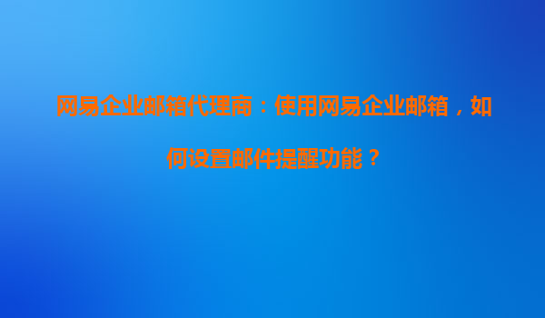 2025-08-26網(wǎng)易企業(yè)郵箱代理商:使用網(wǎng)易企業(yè)郵箱,如何設(shè)置郵件提醒功能? 在現(xiàn)代商務(wù)溝通中,電子郵件是企業(yè)內(nèi)外交流的重要工具。為了確保不錯(cuò)過任何重要郵件,郵件提醒功能顯得尤為重要。作為國(guó)內(nèi)領(lǐng)先的企業(yè)郵箱服務(wù)提...