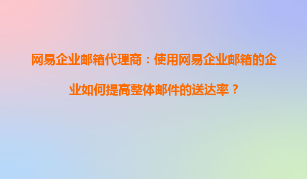 2025-08-27網(wǎng)易企業(yè)郵箱代理商:使用網(wǎng)易企業(yè)郵箱的企業(yè)如何提高整體郵件的送達(dá)率? 在當(dāng)今數(shù)字化時(shí)代,電子郵件仍然是企業(yè)溝通的重要工具之一。然而,隨著垃圾郵件過濾技術(shù)的不斷升級(jí),許多企業(yè)的郵件送達(dá)率受到了影...