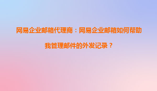 2025-08-24網(wǎng)易企業(yè)郵箱代理商:網(wǎng)易企業(yè)郵箱如何幫助我管理郵件的外發(fā)記錄? 一、網(wǎng)易企業(yè)郵箱的外發(fā)記錄管理功能概述 網(wǎng)易企業(yè)郵箱作為國內(nèi)領(lǐng)先的企業(yè)級郵件服務(wù)提供商,為企業(yè)用戶提供了全面的郵件外發(fā)記錄管...