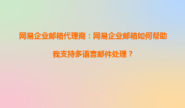 2025-08-24網(wǎng)易企業(yè)郵箱代理商:網(wǎng)易企業(yè)郵箱如何幫助我支持多語言郵件處理? 在全球化的商業(yè)環(huán)境中,企業(yè)需要與來自不同國家和地區(qū)的客戶、合作伙伴進(jìn)行溝通。多語言郵件處理能力成為企業(yè)郵箱不可或缺的功能之...