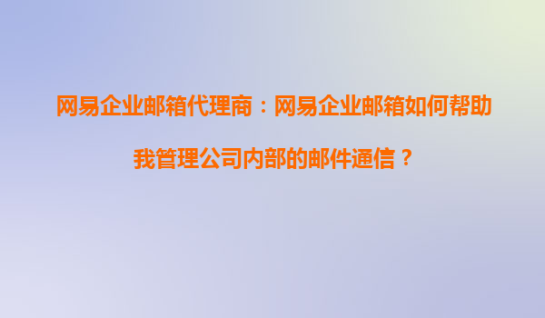 2025-08-23網(wǎng)易企業(yè)郵箱代理商:網(wǎng)易企業(yè)郵箱如何幫助我管理公司內(nèi)部的郵件通信? 在現(xiàn)代企業(yè)管理中,高效的內(nèi)部溝通是提升工作效率和團(tuán)隊(duì)協(xié)作的關(guān)鍵。郵件通信作為企業(yè)內(nèi)部溝通的重要工具,其安全性、穩(wěn)定性和功能性直接...