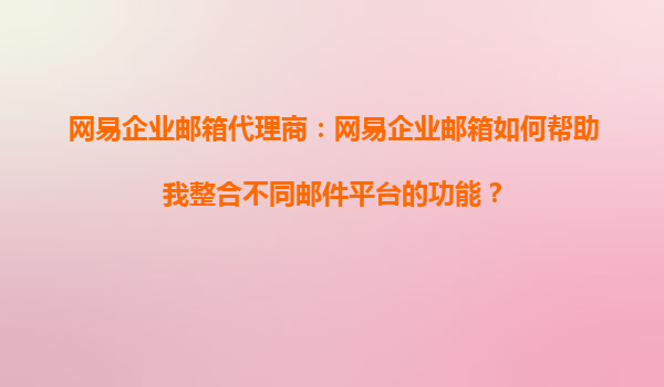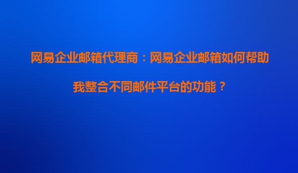 2025-08-26網(wǎng)易企業(yè)郵箱代理商:網(wǎng)易企業(yè)郵箱如何幫助我整合不同郵件平臺的功能? 在當(dāng)今數(shù)字化辦公環(huán)境中,企業(yè)往往需要使用多個郵件平臺來滿足不同業(yè)務(wù)需求,但多平臺管理可能導(dǎo)致效率低下、數(shù)據(jù)分散等問題。網(wǎng)易企業(yè)郵...