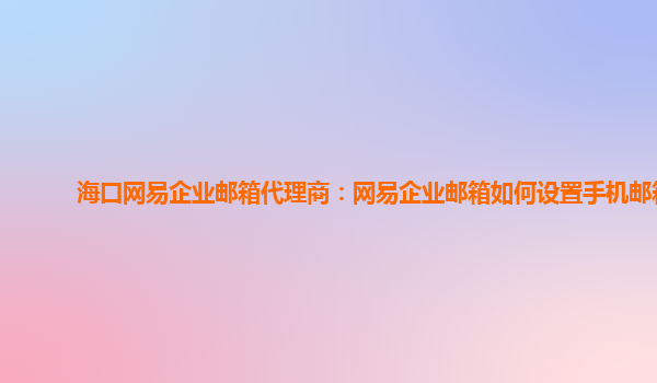 2024-01-11網(wǎng)易企業(yè)郵箱如何設(shè)置手機(jī)郵箱 作為海口網(wǎng)易企業(yè)郵箱的代理商,我們了解到許多用戶在使用網(wǎng)易企業(yè)郵箱時(shí)都非常關(guān)心如何設(shè)置手機(jī)郵箱。以下是一個(gè)簡(jiǎn)單的步驟指南,幫助您輕松地設(shè)置網(wǎng)易企業(yè)郵箱的手機(jī)郵箱。 ...