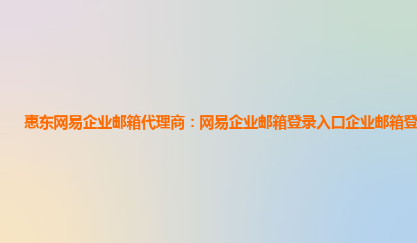4008-020-360 北流網(wǎng)易企業(yè)郵箱代理商:如何注冊郵箱163免費 一、什么是網(wǎng)易企業(yè)郵箱 網(wǎng)易企業(yè)郵箱是網(wǎng)易公司推出的一款專業(yè)的企業(yè)電子郵件服務,旨在為企事業(yè)單位提供安全、穩(wěn)定、高效的企業(yè)郵箱解決方案。 二、注冊網(wǎng)易企業(yè)郵...