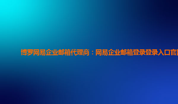 2024-01-10網(wǎng)易企業(yè)郵箱代理商:網(wǎng)易企業(yè)郵箱登錄入口官網(wǎng) 網(wǎng)易企業(yè)郵箱是一款以博羅為代理商的企業(yè)級郵箱服務,提供安全可靠的郵件傳輸和管理。作為一家知名的互聯(lián)網(wǎng)公司,網(wǎng)易憑借其強大的技術實力和豐富的經(jīng)驗,在企業(yè)郵...