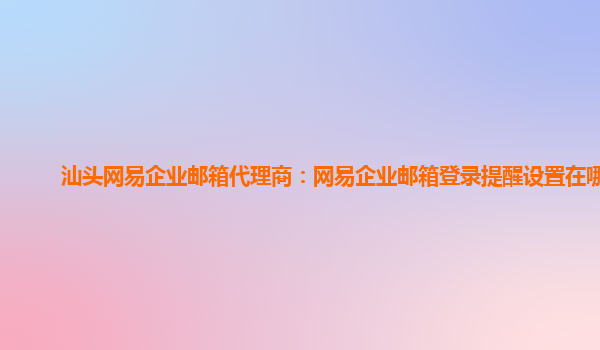 2024-01-10汕頭網(wǎng)易企業(yè)郵箱代理商:網(wǎng)易企業(yè)郵箱登錄提醒設置在哪里 網(wǎng)易企業(yè)郵箱登錄提醒設置說明 隨著互聯(lián)網(wǎng)技術的發(fā)展,越來越多的企業(yè)開始使用網(wǎng)易企業(yè)郵箱來處理日常的郵件通訊。然而,在忙碌的工作中,我們可能會錯過...
