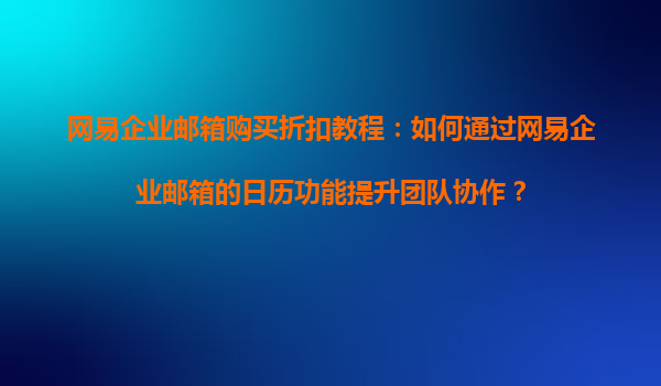 2025-08-21網易企業(yè)郵箱購買折扣教程:如何通過網易企業(yè)郵箱的日歷功能提升團隊協作? 一、網易企業(yè)郵箱的團隊協作優(yōu)勢 網易企業(yè)郵箱作為國內領先的企業(yè)通信工具,不僅提供穩(wěn)定高效的郵件服務,還集成了強大...