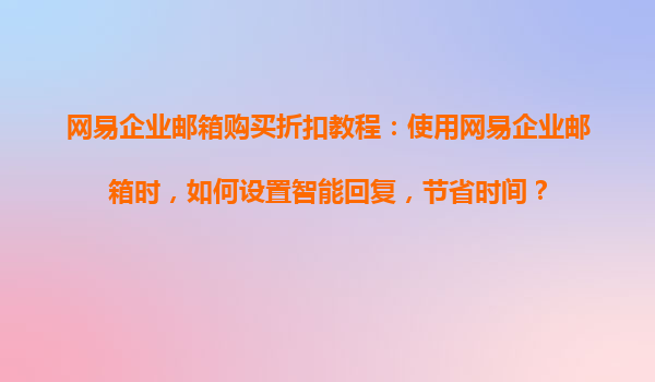 2025-08-21網易企業(yè)郵箱購買折扣教程:使用網易企業(yè)郵箱時,如何設置智能回復,節(jié)省時間? 一、網易企業(yè)郵箱的優(yōu)勢 網易企業(yè)郵箱作為國內知名的企業(yè)級郵箱服務,憑借其穩(wěn)定的性能、強大的功能和優(yōu)質的客戶服務,贏得...