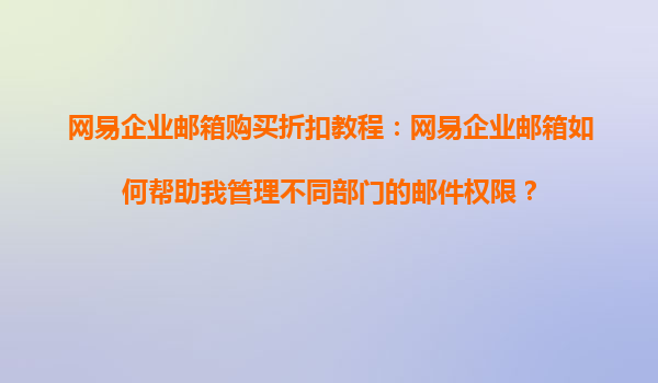 2025-08-21網易企業(yè)郵箱購買折扣教程:網易企業(yè)郵箱如何幫助我管理不同部門的郵件權限? 在現代企業(yè)管理中,高效的郵件系統(tǒng)是保障內部溝通順暢的重要工具。網易企業(yè)郵箱作為國內領先的企業(yè)級郵箱服務,不僅...