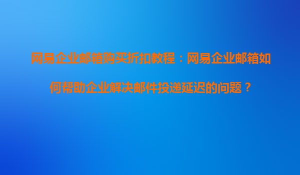 2025-08-21網易企業(yè)郵箱購買折扣教程:網易企業(yè)郵箱如何幫助企業(yè)解決郵件投遞延遲的問題? 一、郵件投遞延遲:企業(yè)溝通的隱形殺手 在快節(jié)奏的商業(yè)環(huán)境中,郵件投遞延遲可能帶來嚴重后...