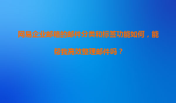 4008-020-360 網(wǎng)易企業(yè)郵箱的郵件分類(lèi)和標(biāo)簽功能如何,能幫我高效整理郵件嗎? 網(wǎng)易企業(yè)郵箱的郵件分類(lèi)與標(biāo)簽功能解析 在信息爆炸的時(shí)代,高效管理郵件已成為職場(chǎng)人士的必修課。網(wǎng)易企業(yè)郵箱憑借...