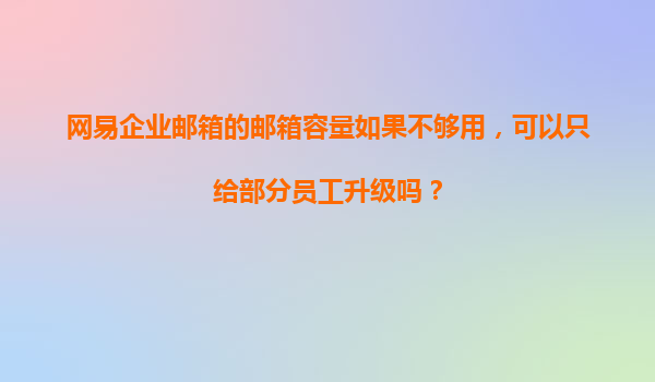 2025-11-12網(wǎng)易企業(yè)郵箱容量不足?靈活升級(jí)方案與代理商優(yōu)勢(shì)解析 一、網(wǎng)易企業(yè)郵箱容量管理痛點(diǎn) 隨著企業(yè)業(yè)務(wù)發(fā)展,郵件往來(lái)日益頻繁,網(wǎng)易企業(yè)郵箱的默認(rèn)存儲(chǔ)容量(通常為5GB/用戶(hù))可能存在...