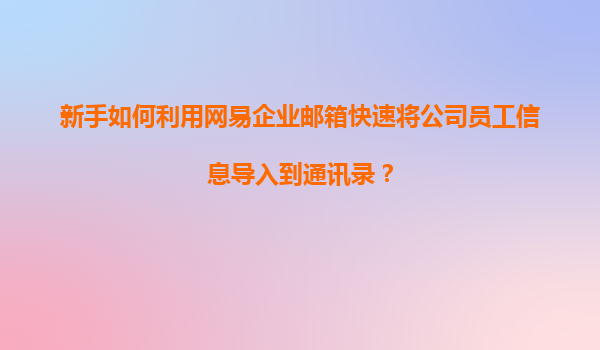 2025-11-11新手如何利用網(wǎng)易企業(yè)郵箱快速將公司員工信息導(dǎo)入到通訊錄? 引言 在企業(yè)日常運(yùn)營(yíng)中,高效的內(nèi)部溝通是提升工作效率的關(guān)鍵。網(wǎng)易企業(yè)郵箱作為一款功能強(qiáng)大的企業(yè)郵箱服務(wù),提供了便捷的通訊錄管理功能,尤...