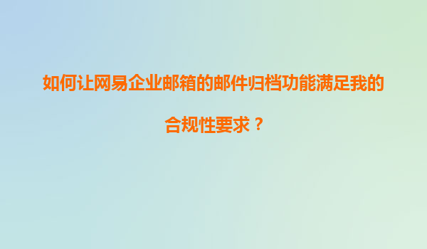 2025-11-12網(wǎng)易企業(yè)郵箱郵件歸檔功能如何滿(mǎn)足合規(guī)性要求 隨著企業(yè)對(duì)數(shù)據(jù)安全和合規(guī)管理的重視程度不斷提升,郵件歸檔已成為企業(yè)管理中不可或缺的一環(huán)。作為國(guó)內(nèi)領(lǐng)先的企業(yè)郵箱服務(wù)提供商,網(wǎng)易企業(yè)郵箱憑借強(qiáng)大的郵件歸檔功...