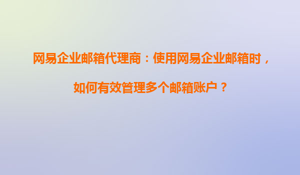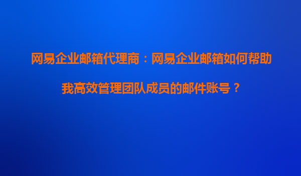 2025-08-19網(wǎng)易企業(yè)郵箱代理:網(wǎng)易企業(yè)郵箱如何幫助高效管理團(tuán)隊(duì)成員郵件賬號 在現(xiàn)代企業(yè)中,電子郵件作為日常溝通的重要工具,其管理效率直接影響到團(tuán)隊(duì)協(xié)作的流暢性。網(wǎng)易企業(yè)郵箱憑借其強(qiáng)大的功能和穩(wěn)定的服務(wù),成為眾多...