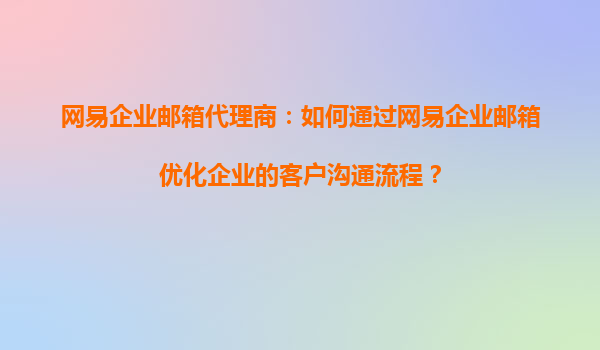 2025-08-20網(wǎng)易企業(yè)郵箱代理商:如何通過網(wǎng)易企業(yè)郵箱優(yōu)化企業(yè)的客戶溝通流程? 引言 在當(dāng)今數(shù)字化高速發(fā)展的時(shí)代,企業(yè)間的溝通效率直接影響到業(yè)務(wù)推進(jìn)和客戶關(guān)系的維護(hù)...