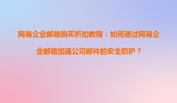 2025-08-20網(wǎng)易企業(yè)郵箱購買折扣教程:如何通過網(wǎng)易企業(yè)郵箱加強(qiáng)公司郵件的安全防護(hù)? 一、為什么選擇網(wǎng)易企業(yè)郵箱? 在數(shù)字化時(shí)代,企業(yè)郵箱不僅是溝通工具,更是企業(yè)數(shù)...
