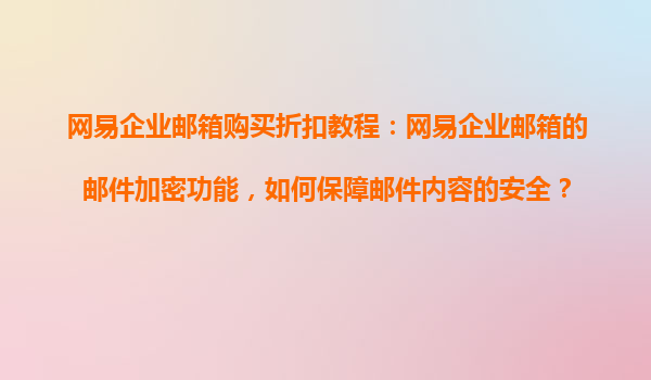 2025-08-21網(wǎng)易企業(yè)郵箱購買折扣教程:網(wǎng)易企業(yè)郵箱的郵件加密功能,如何保障郵件內(nèi)容的安全? 一、網(wǎng)易企業(yè)郵箱的優(yōu)勢 網(wǎng)易企業(yè)郵箱作為國內(nèi)領(lǐng)先的企業(yè)級郵件服務(wù)提供商,憑借其強(qiáng)大的技術(shù)實(shí)力和...