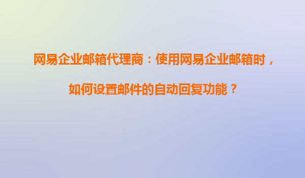 2025-08-19網(wǎng)易企業(yè)郵箱代理商指南:如何設(shè)置郵件自動(dòng)回復(fù)功能 一、網(wǎng)易企業(yè)郵箱的自動(dòng)回復(fù)功能優(yōu)勢 作為國內(nèi)領(lǐng)先的企業(yè)郵箱服務(wù)商,網(wǎng)易企業(yè)郵箱的自動(dòng)回復(fù)功能在以下方面表現(xiàn)突出: 靈活的時(shí)間設(shè)...