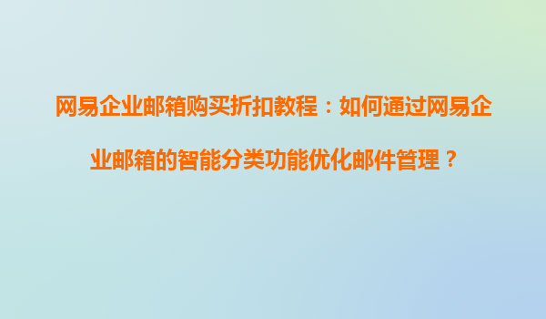 2025-08-21網(wǎng)易企業(yè)郵箱智能分類功能:高效郵件管理的秘密武器 一、為什么需要智能郵件分類? 在當(dāng)今快節(jié)奏的商業(yè)環(huán)境中,每天涌入企業(yè)郵箱的郵件量呈現(xiàn)爆炸式增長。來自客戶、合作伙伴、內(nèi)部團(tuán)隊(duì)以及各種訂閱服...