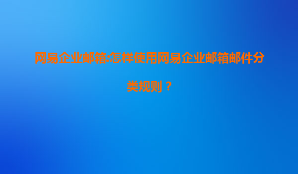2025-08-12網(wǎng)易企業(yè)郵箱:高效管理郵件的分類規(guī)則使用指南 一、網(wǎng)易企業(yè)郵箱郵件分類規(guī)則簡(jiǎn)介 網(wǎng)易企業(yè)郵箱作為國(guó)內(nèi)領(lǐng)先的企業(yè)級(jí)郵箱服務(wù),提供強(qiáng)大的郵件分類功能,幫助用戶高效管理海量郵件。通過(guò)設(shè)置分類規(guī)則,系...