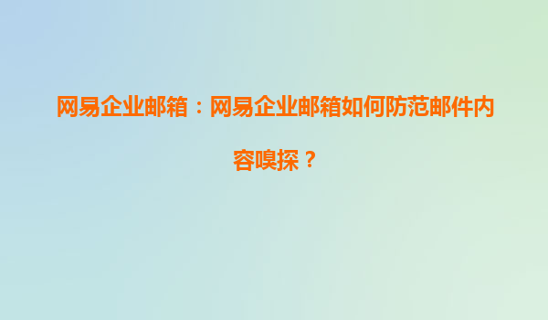 2025-08-09網(wǎng)易企業(yè)郵箱如何防范郵件內(nèi)容嗅探? 一、郵件內(nèi)容嗅探的風險與挑戰(zhàn) 在數(shù)字化辦公環(huán)境中,企業(yè)郵箱承載著大量敏感信息,包括商業(yè)機密、客戶數(shù)據(jù)和財務(wù)信息等。郵件內(nèi)容嗅探(即通過技術(shù)手段截獲或竊取郵件內(nèi)...