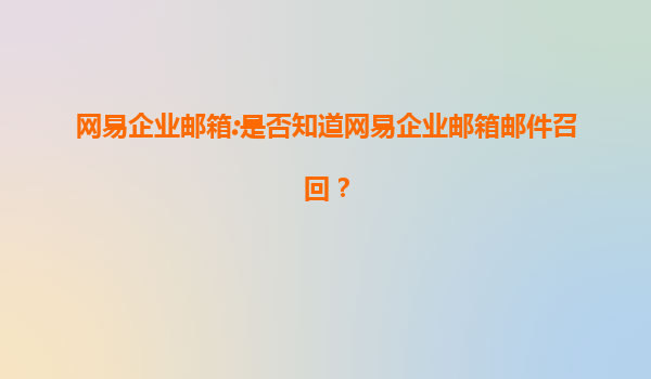 2025-08-09網(wǎng)易企業(yè)郵箱:是否知道網(wǎng)易企業(yè)郵箱郵件召回? 在現(xiàn)代企業(yè)辦公中,電子郵件已成為不可或缺的溝通工具。然而,誤發(fā)郵件的情況時有發(fā)生,這時郵件的召回功能就顯得尤為重要。網(wǎng)易企業(yè)郵箱作為國內(nèi)領(lǐng)先的企業(yè)...