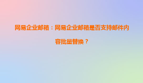 2025-08-09網(wǎng)易企業(yè)郵箱:如何利用網(wǎng)易企業(yè)郵箱管理郵件自動轉(zhuǎn)發(fā)組? 一、網(wǎng)易企業(yè)郵箱簡介 網(wǎng)易企業(yè)郵箱是國內(nèi)領(lǐng)先的企業(yè)級電子郵件服務(wù)提供商,憑借其穩(wěn)定、安全、高效的特點,贏得了眾多企業(yè)的青睞。網(wǎng)易企業(yè)郵箱不僅...