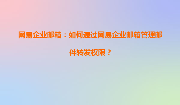 2025-08-08網(wǎng)易企業(yè)郵箱:如何通過網(wǎng)易企業(yè)郵箱管理郵件轉(zhuǎn)發(fā)權(quán)限? 一、網(wǎng)易企業(yè)郵箱簡介 網(wǎng)易企業(yè)郵箱是國內(nèi)領(lǐng)先的企業(yè)級電子郵件服務(wù)提供商,憑借其穩(wěn)定、安全、高效的特點,贏得了眾多企業(yè)的青睞。作為網(wǎng)易旗下的專...