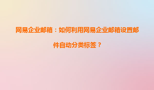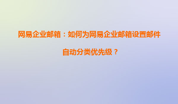 2025-08-07網(wǎng)易企業(yè)郵箱:如何為網(wǎng)易企業(yè)郵箱設(shè)置郵件自動(dòng)分類(lèi)優(yōu)先級(jí)? 在現(xiàn)代企業(yè)管理中,高效的郵件處理能力是提升工作效率的關(guān)鍵。網(wǎng)易企業(yè)郵箱憑借其強(qiáng)大的功能和穩(wěn)定的服務(wù),成為眾多企業(yè)的首選。本文將詳...