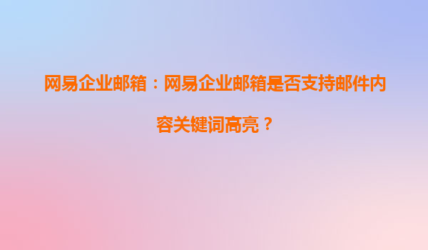 2025-08-08網(wǎng)易企業(yè)郵箱:高效管理郵件的關(guān)鍵詞高亮功能與代理商優(yōu)勢(shì)解析 一、網(wǎng)易企業(yè)郵箱的核心功能:郵件內(nèi)容關(guān)鍵詞高亮 在快節(jié)奏的商務(wù)溝通中,快速定位郵件關(guān)鍵信息...