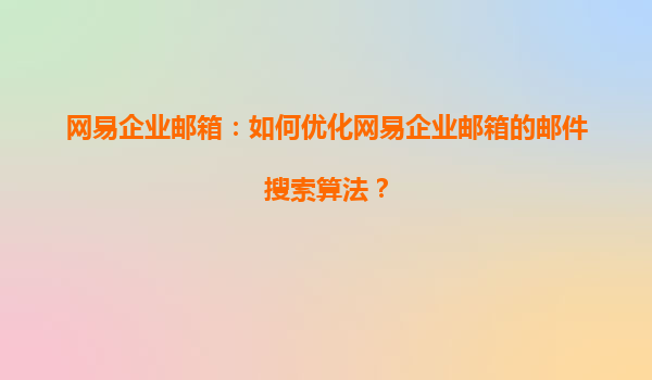 2025-08-08網(wǎng)易企業(yè)郵箱:如何優(yōu)化網(wǎng)易企業(yè)郵箱的郵件搜索算法? 一、網(wǎng)易企業(yè)郵箱的核心優(yōu)勢(shì) 網(wǎng)易企業(yè)郵箱作為國(guó)內(nèi)領(lǐng)先的企業(yè)級(jí)郵件服務(wù)提供商,憑借以下優(yōu)勢(shì)成為眾多企業(yè)的首選: 高安全性:采用SSL加...