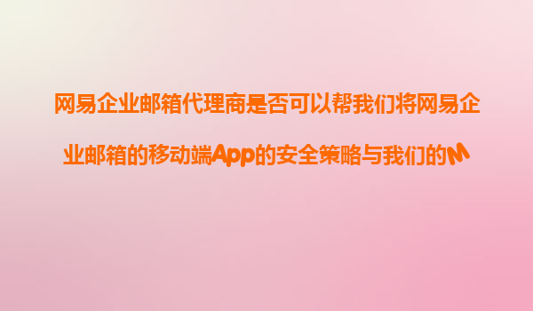 2025-11-10網(wǎng)易企業(yè)郵箱代理商能否助力移動端App安全策略與MDM系統(tǒng)集成? 一、網(wǎng)易企業(yè)郵箱的移動端安全優(yōu)勢 網(wǎng)易企業(yè)郵箱作為國內(nèi)領先的企業(yè)通信解決方案,其移動端App具備多重安全防護機制,包括但不限于: ...