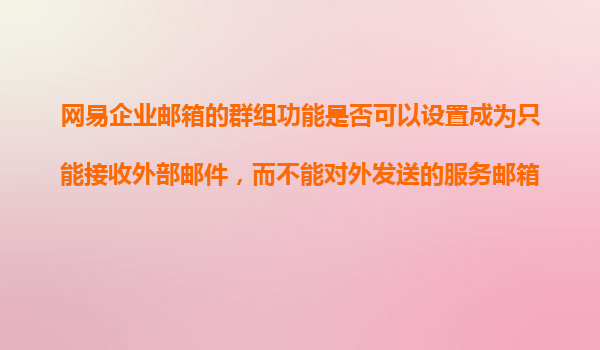 2025-11-10網(wǎng)易企業(yè)郵箱的群組功能:能否設置為僅接收外部郵件而禁止對外發(fā)送? 網(wǎng)易企業(yè)郵箱的核心優(yōu)勢 網(wǎng)易企業(yè)郵箱作為國內(nèi)領先的企業(yè)級郵件服務商,以高效、穩(wěn)定、安...