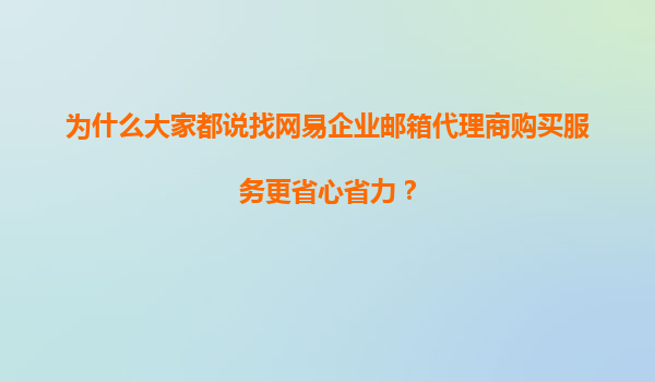 2025-11-11為什么大家都說找網(wǎng)易企業(yè)郵箱代理商購買服務更省心省力? 引言 在數(shù)字化辦公時代,企業(yè)郵箱已成為企業(yè)溝通和管理的重要工具。面對眾多企業(yè)郵箱服務商,許多企業(yè)選擇通過網(wǎng)易企業(yè)郵箱代...