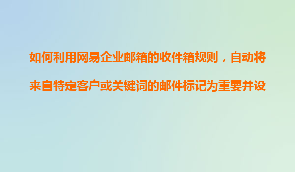 2025-11-10網(wǎng)易企業(yè)郵箱收件箱規(guī)則實戰(zhàn):自動標記重要客戶郵件并設置提醒 為什么要使用收件箱規(guī)則? 在商務溝通中,來自重要客戶或包含關鍵項目信息的郵件往往需要優(yōu)先處理。網(wǎng)易企業(yè)郵箱的收件箱規(guī)則功...