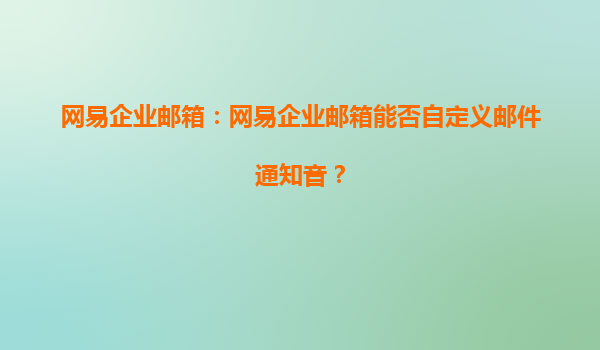 2025-08-04網(wǎng)易企業(yè)郵箱:能否自定義郵件通知音? 一、網(wǎng)易企業(yè)郵箱的通知功能概述 網(wǎng)易企業(yè)郵箱作為國內(nèi)領(lǐng)先的企業(yè)級郵件服務(wù)提供商,其功能設(shè)計始終以用戶需求為核心。在郵件通知方面,網(wǎng)易企業(yè)郵箱支持多種提醒方...