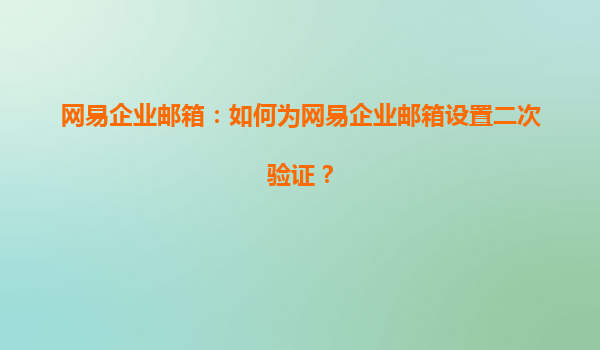 2025-08-05網(wǎng)易企業(yè)郵箱:如何為網(wǎng)易企業(yè)郵箱設(shè)置二次驗(yàn)證? 在當(dāng)今數(shù)字化時代,企業(yè)郵箱的安全性至關(guān)重要。網(wǎng)易企業(yè)郵箱作為國內(nèi)領(lǐng)先的企業(yè)郵箱服務(wù)提供商,提供了多種安全措施來保護(hù)企業(yè)數(shù)據(jù),其中二次驗(yàn)證(2FA)是一...