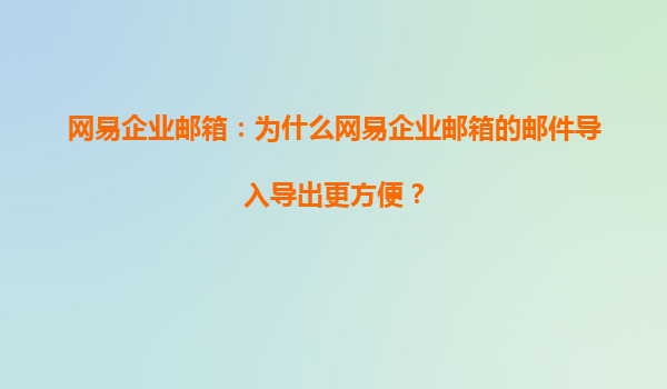 4008-020-360 網(wǎng)易企業(yè)郵箱:為什么網(wǎng)易企業(yè)郵箱的郵件導(dǎo)入導(dǎo)出更方便? 在當(dāng)今數(shù)字化辦公環(huán)境中,企業(yè)郵箱作為溝通協(xié)作的核心工具,其功能性和便捷性直接影響企業(yè)的工作效率。網(wǎng)易企業(yè)郵箱憑借其強(qiáng)大的郵件導(dǎo)入導(dǎo)出功能,成...